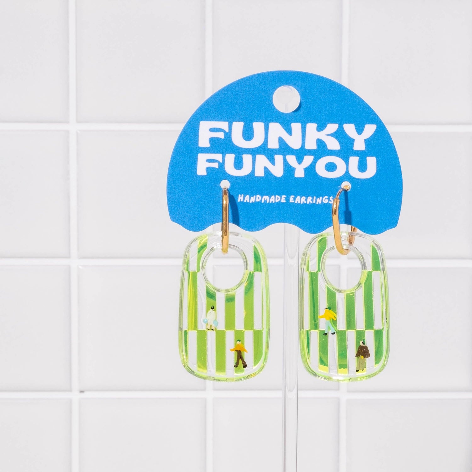 These earrings are 100% made in our Adelaide studio. Due to the hand-crafted nature of our collection, we are unable to reproduce the exact colour and pattern, which makes this piece truly unique. Please also note that minor imperfections such as small bubbles and slight scratches may occur.